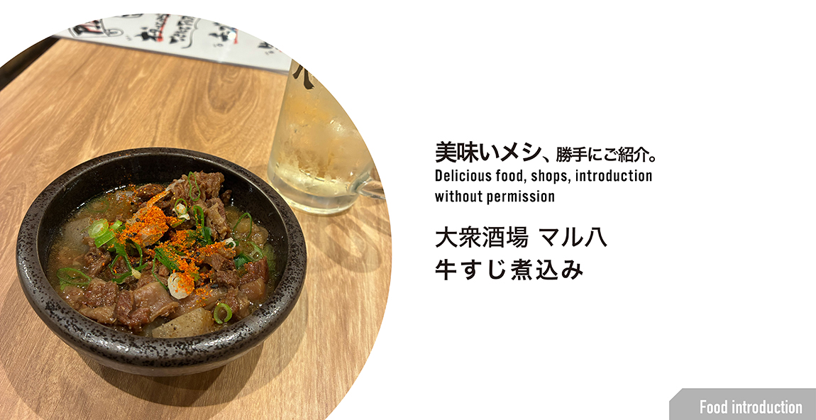 何を頼もうか迷ったが、まずは名物らしい牛すじ煮込み。運ばれてきた瞬間、湯気と一緒に立ち上る香りで期待値が上がる。一口食べてみると、牛すじは驚くほど柔らかく、味噌のコクがしっかりしているのに、くどさはない。