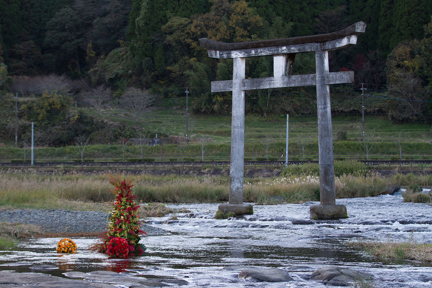 Art works / Fall of 2016 / Bungoono Ohita 2016年 秋 大分県豊後大野市 原尻の滝 Producer:Art directorShinji Iwabuchi PhotographerKazumichi Kidera : FU Chief flower designerTetsuya Einaga
